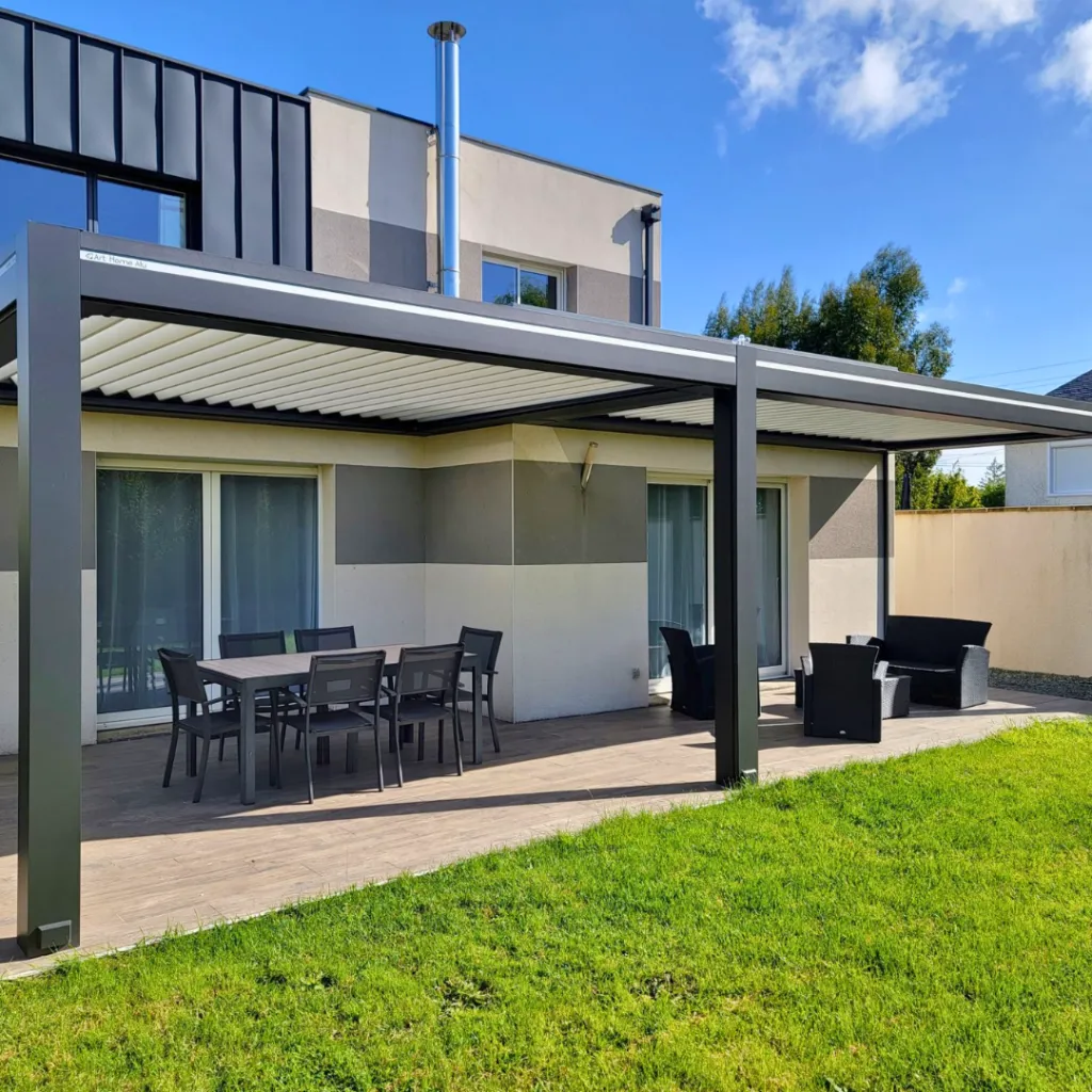 Lames orientables, protection contre le vent et la pluie : vous maîtrisez l’ambiance, quelle que soit la météo.